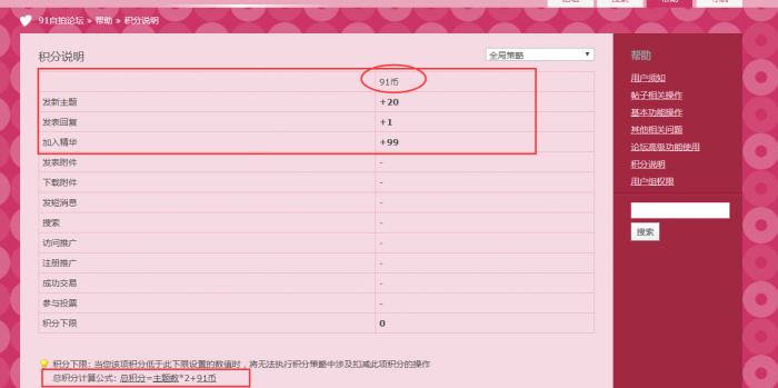 发主题、评论、精华可获得不等数量的91币